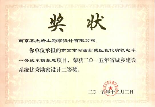 有軌電車省優(yōu)二等獎(jiǎng)